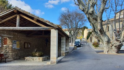 Note : La photo de gauche représente la maison des Templiers. Celle du milieu, une fontaine contemporaine qui a inspiré la bricole.