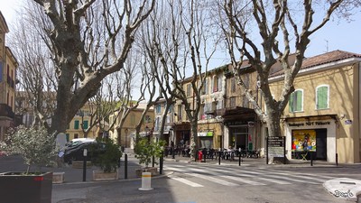Note : La photo de droite représente la place où s'installe le camion pizza.