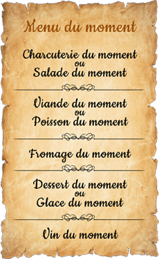 Avec l'écrasée de pommes de terre, une autre formule à la mode revient fréquemment sur les cartes, c'est le plat « du moment » (le dessert du moment, la soupe du moment, les légumes du moment, la barbaque du moment, etc, selon la fantaisie de l'établissement). « Du moment » remplace plus ou moins du jour, en ce sens que le moment peut s'étendre sur plusieurs jours jusqu'à saturation ou fin de stock des ingrédients… du moment.