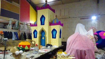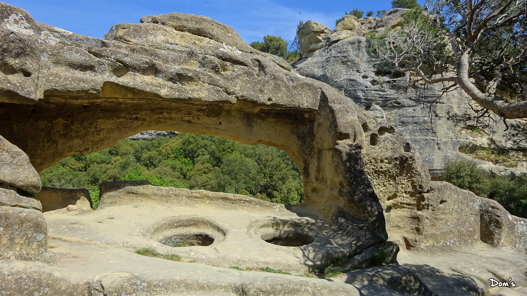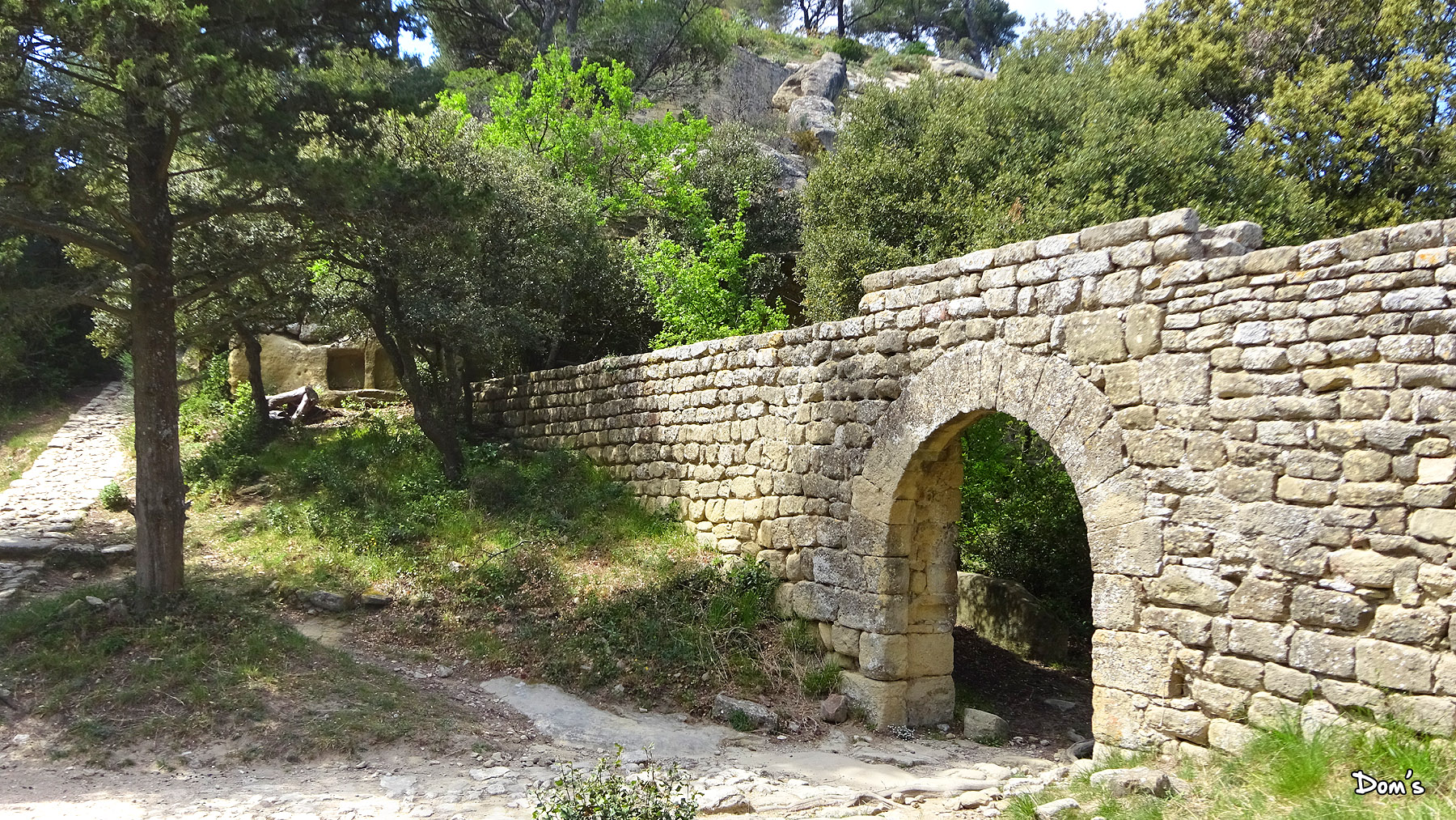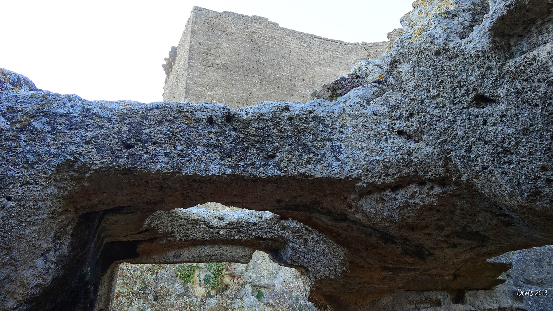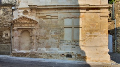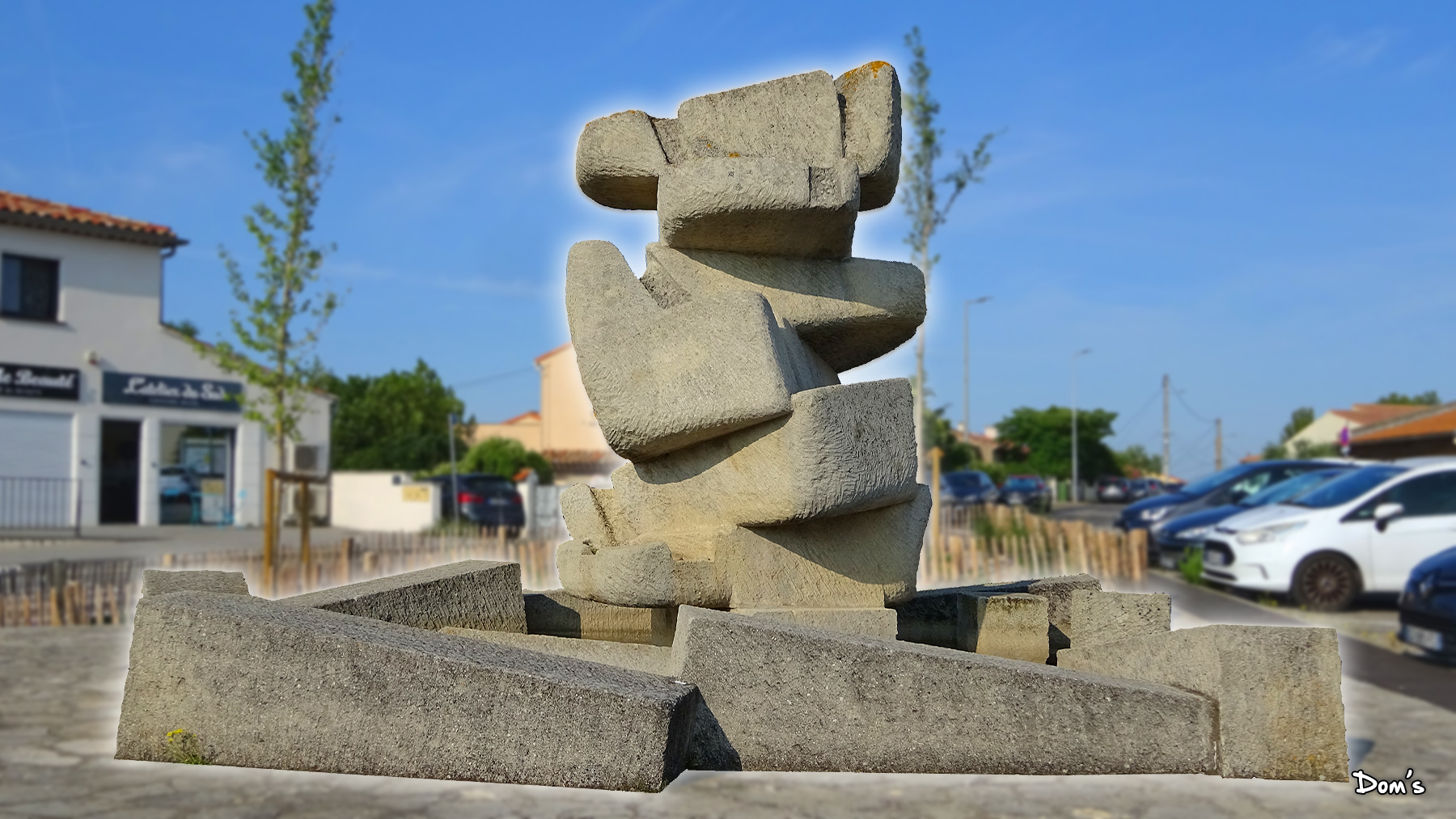 Note : La photo de gauche représente la maison des Templiers. Celle du milieu, une fontaine contemporaine qui a inspiré la bricole.
