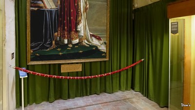 Note : La photo centrale représente la porte cachée par le rideau vert (à droite).